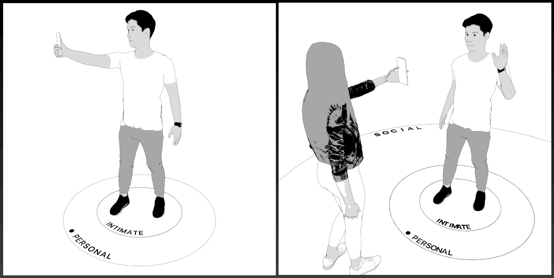 Spatial capabilities such as face tracking and body tracking can be used in camera apps to understand the proximity between the subject and the operator in real time. Proximity can be used to infer context which helps an app define its own state. For example, if the distance between a subject and the device is longer than the length of an arm, it’s likely not to be a selfie. And as the proximity of the subject change so does its salience on screen.