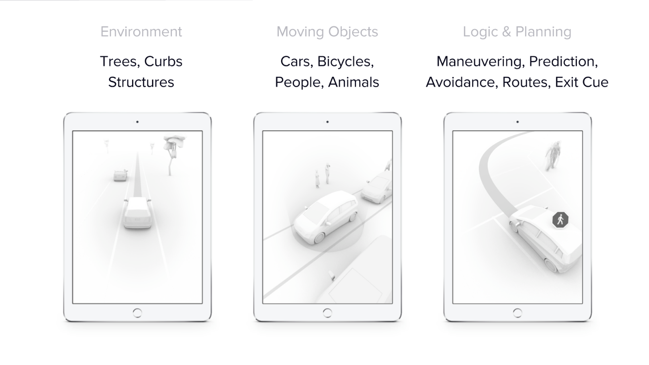 We made many concessions for launch in regard to our visual approach but this design work had a lasting impact. Engineering actively responded to my visualizations by building surface tessellation into the onboard data processing which offloaded the compute load from the backseat iPad. These visualizations also influenced work throughout the company in other driverless-car-related initiatives.
