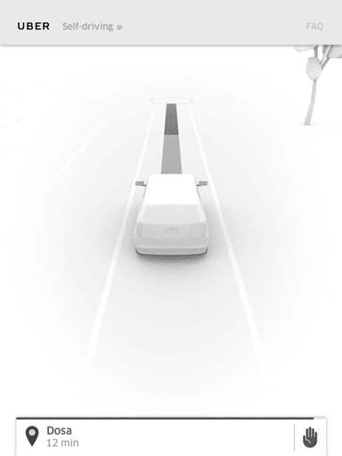 Launching self-driving cars at the Uber Advanced Technology center was a rare opportunity to design an experience for many people's first ride in a self-driving car. Once a driverless Uber is hailed, an iPad mounted in the car serves as the main interface for the rider. I worked on a small team designing the UX/UI, here are some of the materials and prototypes I created .